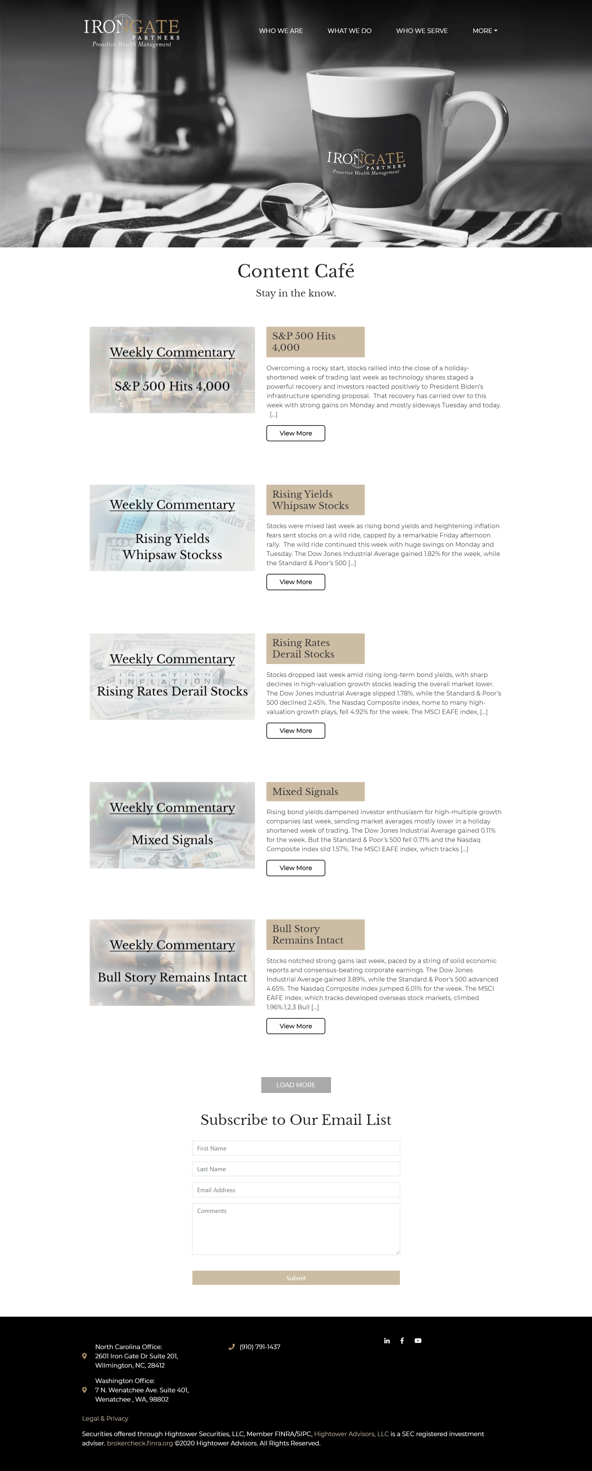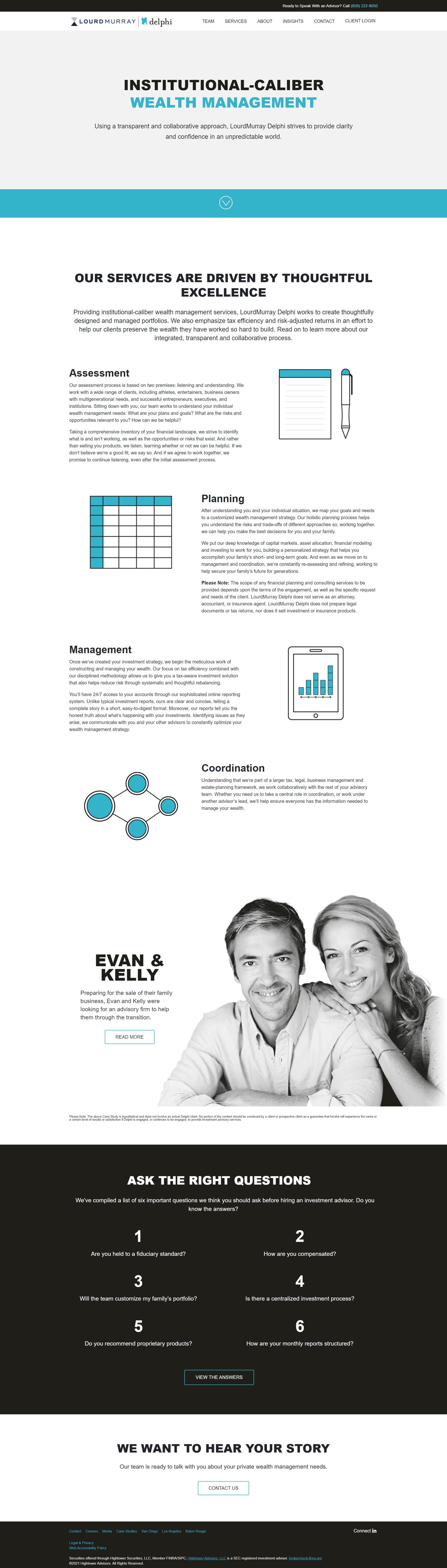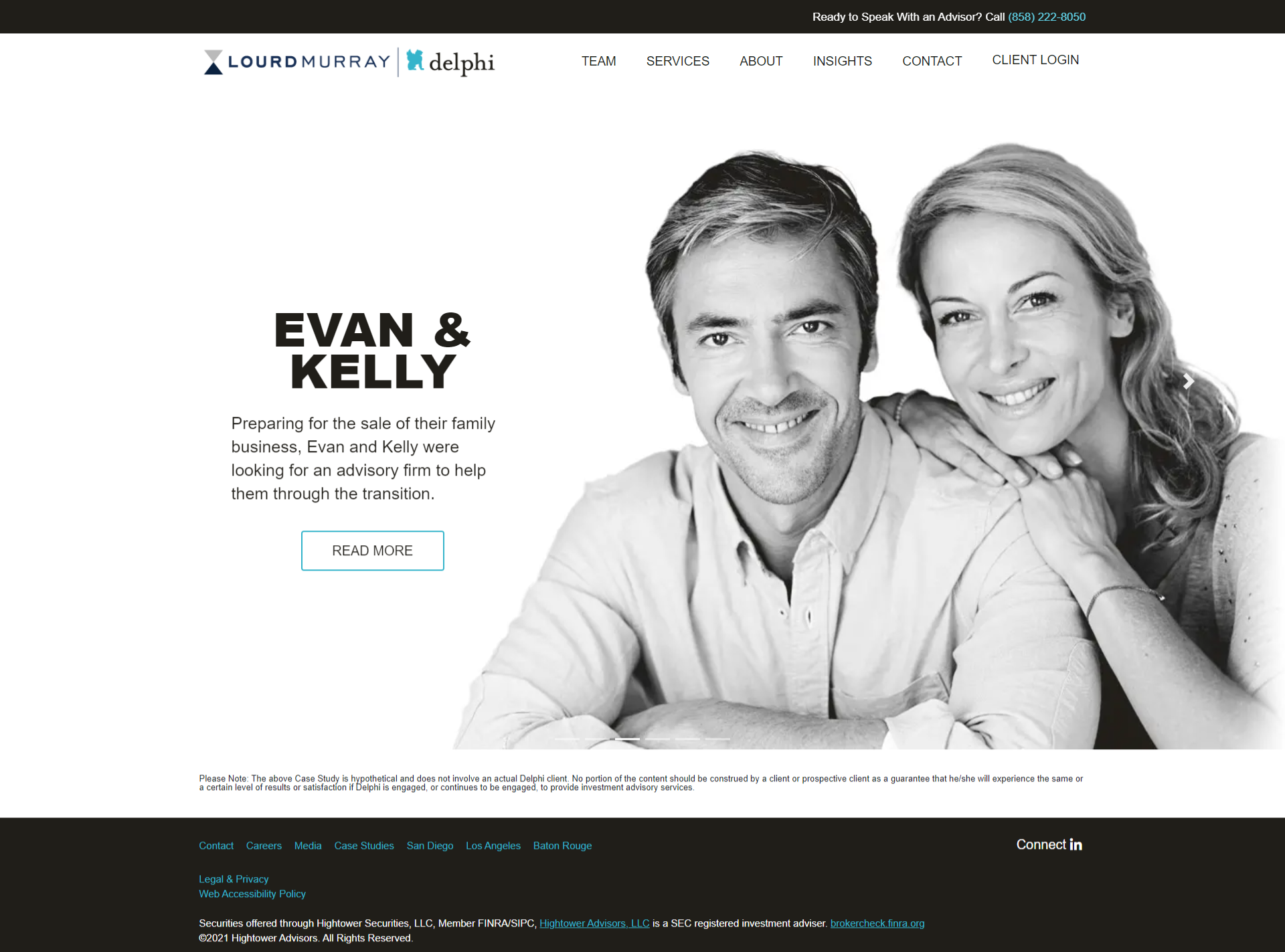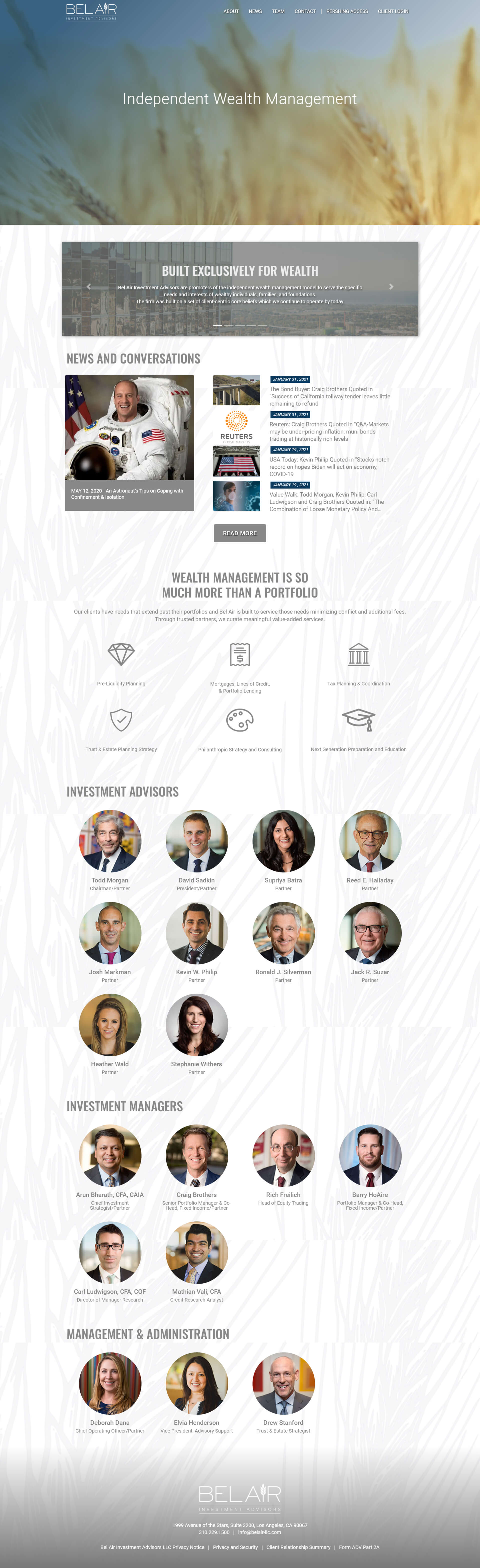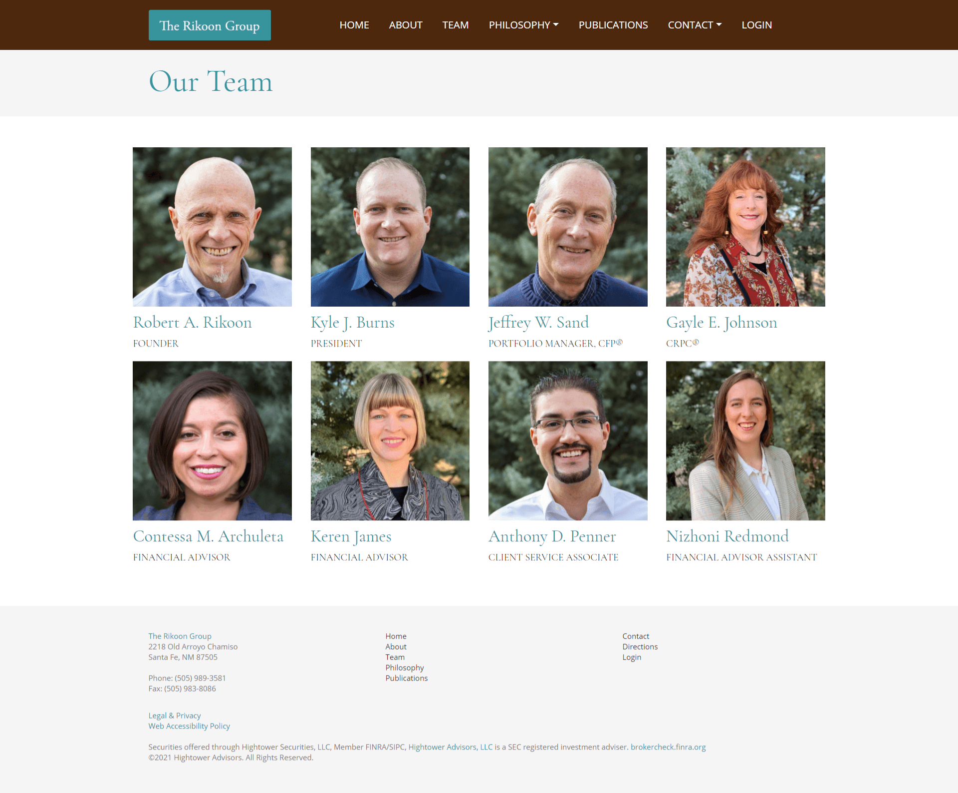 Interactive elements – carousel on the homepage, headshots’ captioning in a hover state