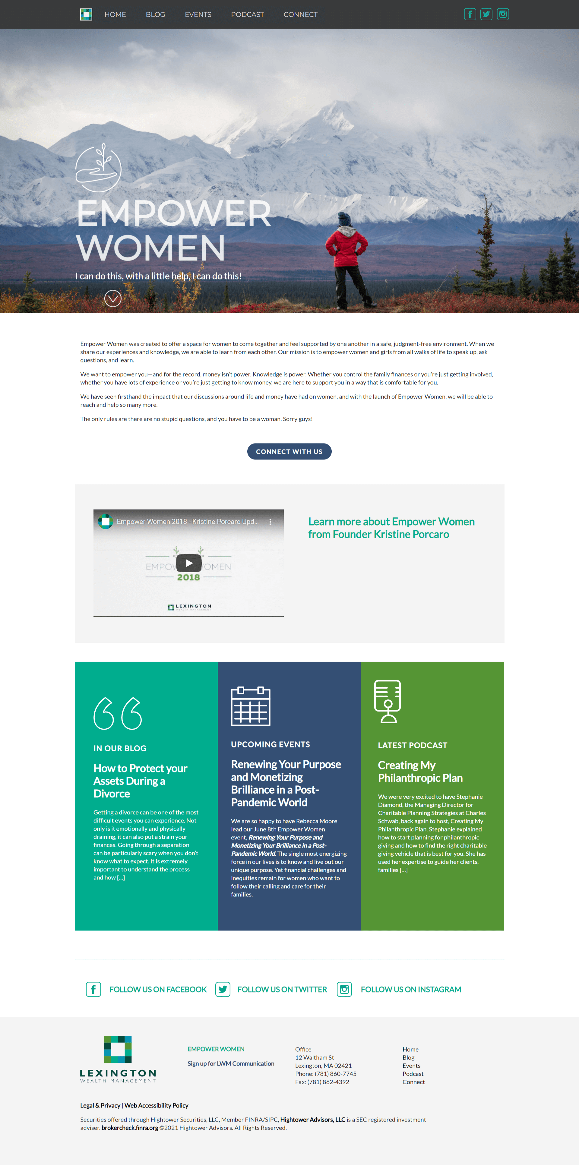 Interactive elements – sticky top navigation with video header and top navigation with different background during scrolling, carousel, *one page architecture with additional sub pages